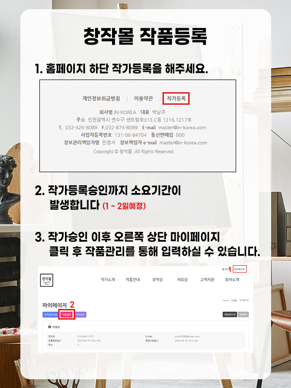 ※작가등록을 하시면 회원가입을 따로 안하셔도 됩니다.